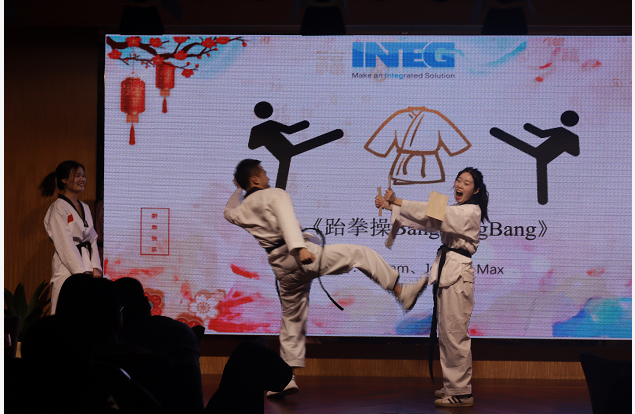 不得不說我們INTEG佳人們,太美了叭,怪不的說“城門外危難之間~英雄一怒為紅顏~就只看了你一眼,便決定了永遠(yuǎn)~”下面有請(qǐng)倉庫部的Elvis給我們帶來一首好聽的歌曲《醉千年》 欣賞完了旗袍秀和歌曲想不想再來一個(gè)勁爆的節(jié)目。跆拳踢木板+跆拳舞BangBangBang