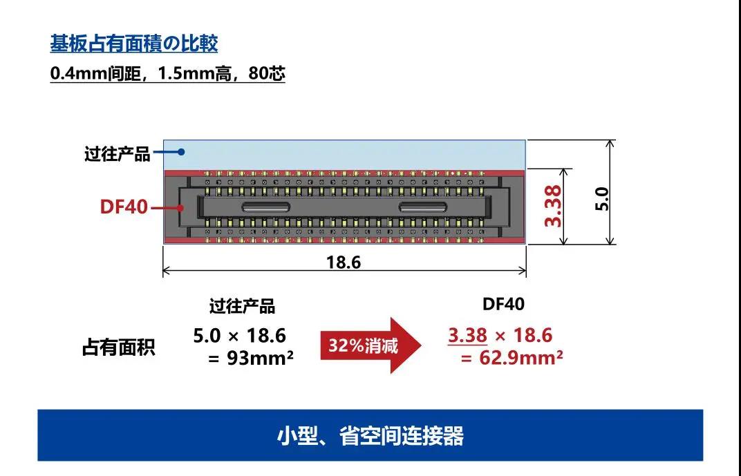 7. 種類繁多(帶護罩:DF40G系列,帶完全鎖:DF40GL系列,ADAS:DF40T系列) 8.核心數(shù)量從10到120核心變化巨大 9.用導向肋確保自動對準:0.33mm 10.防止鎳阻擋層焊接的結(jié)構 11.還提供用于生產(chǎn)線檢查的高度耐用的連接器* 只有H=1.5 mm的產(chǎn)品支持Type-C
